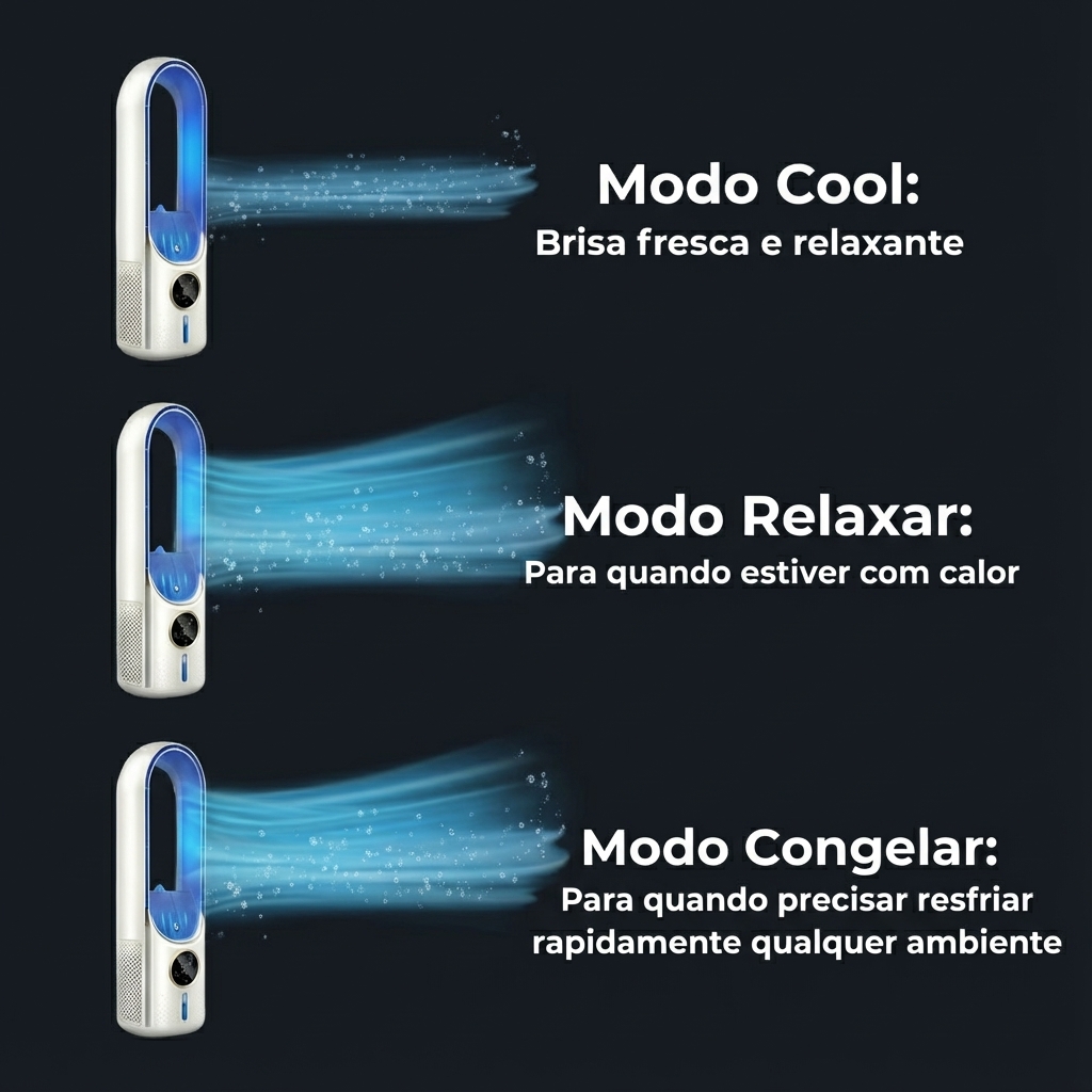 O FreshMax utiliza sua avançada tecnologia para resfriar o ar de forma rápida e eficiente. Quando o ar entra no aparelho, ele passa por um sistema de resfriamento interno que imediatamente o transforma em uma brisa fresca.